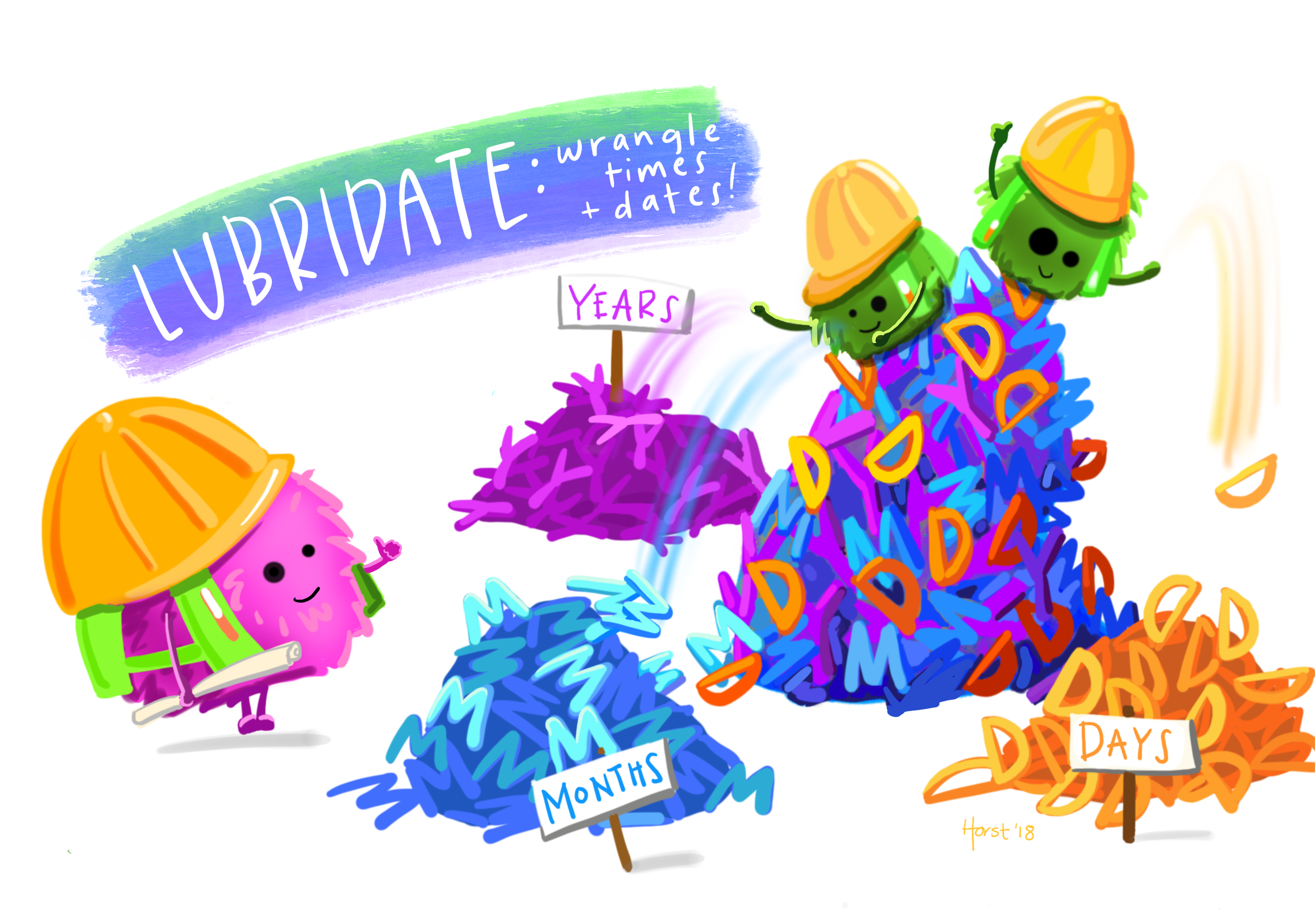 distinct from the dplyr package and even date functions from the lubridate package that help to wrangle data into the format we need.